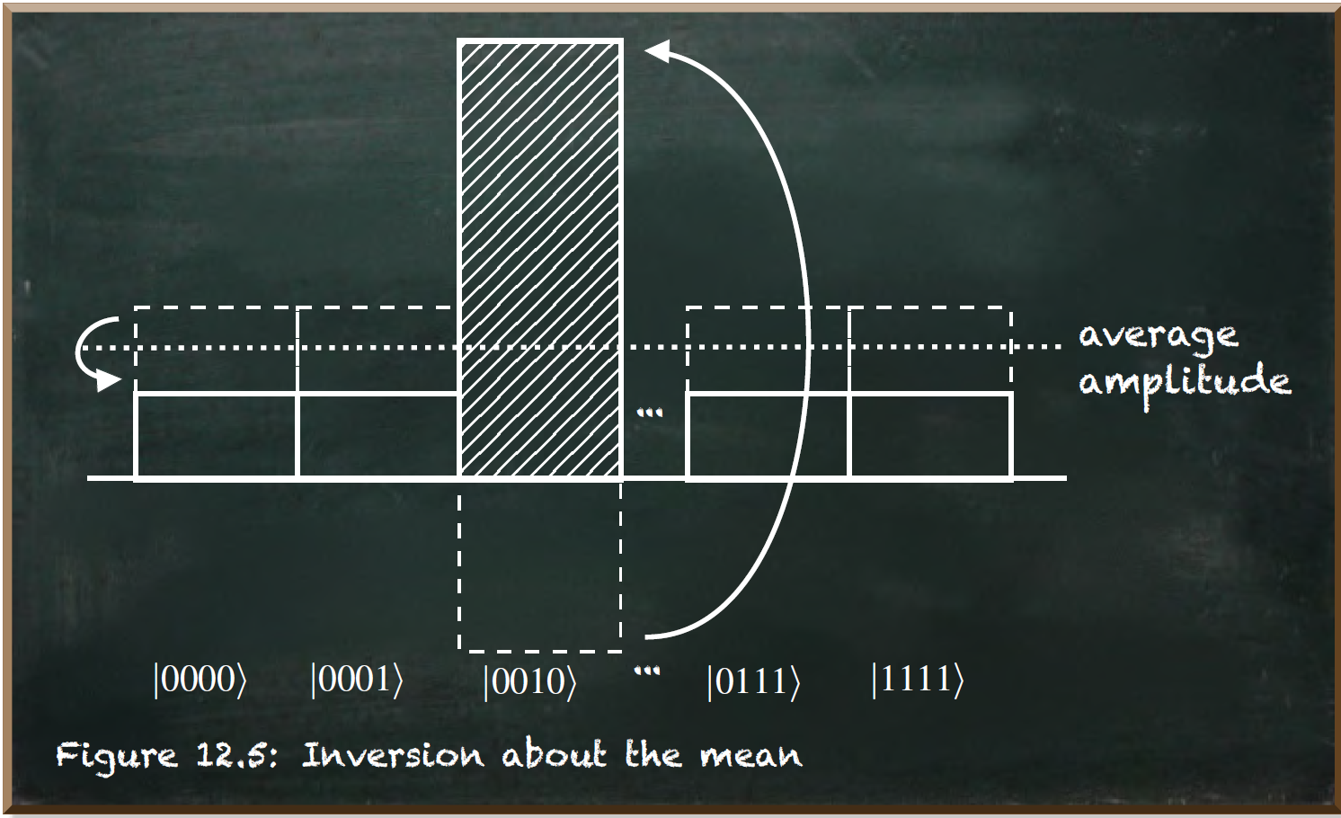 See Listing 3 for the average of all A basis state in quantum computing is one of the fundamental states that form the building blocks of a quantum system’s state space. For a single qubit, the basis states are and ; any other qubit state is a superposition of these. In systems with multiple qubits, basis states are all possible combinations of s and s (e.g., , , , and ), forming an orthonormal basis for the system’s Hilbert space. Learn more about Basis State when one state has a negative A **quantum phase** is the angle component of a particle’s wavefunction that determines how its probability amplitude interferes with others. It doesn’t affect observable probabilities directly but becomes crucial when comparing two or more states, as phase differences lead to interference effects. Essentially, it encodes the relative timing or “alignment” of quantum waves. Learn more about Quantum Phase. Then, amplifying amplitudes that are far away from the average and reducing those that are close to it as depicted in ?