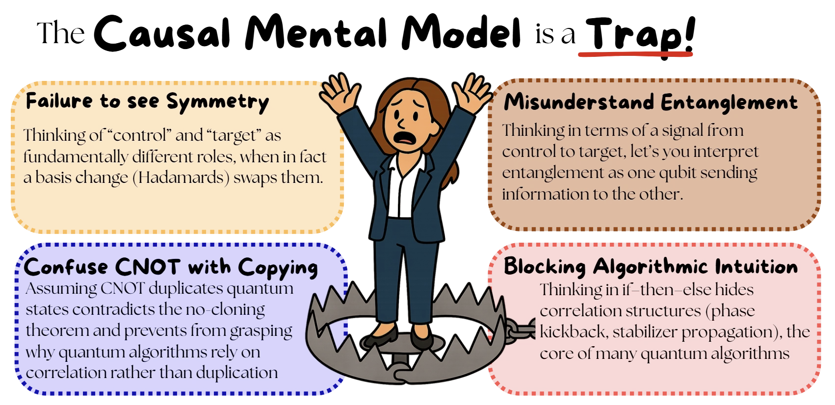 You've been misled about the CNOT gate. Open almost any textbook and you'll read: “If the control qubit is |1⟩, flip the target.” But CNOT is not a cause-and-effect gate. Let's take a look at what it is instead.