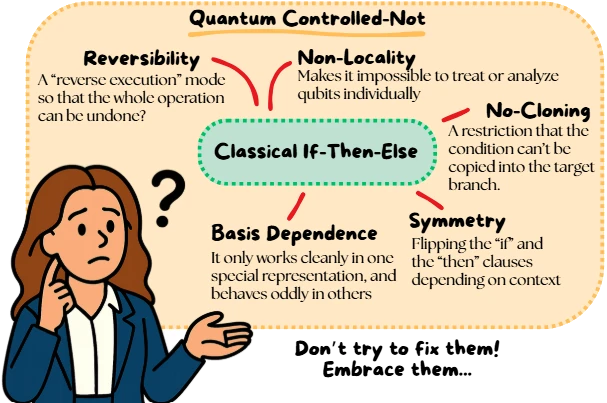 Learn more about Controlled Not Gate isn't broken compared to classical control. It's showing you that the if–then–else model itself is the wrong metaphor.
